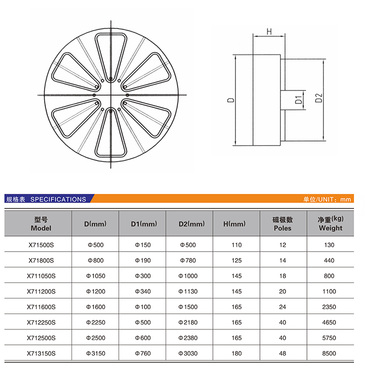 X71-S 扇形极圆形电永磁吸盘