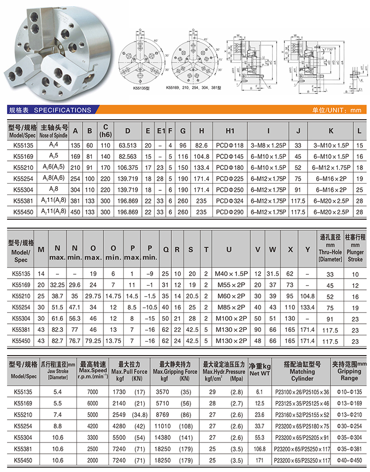 K55 三爪高速中实动力卡盘
